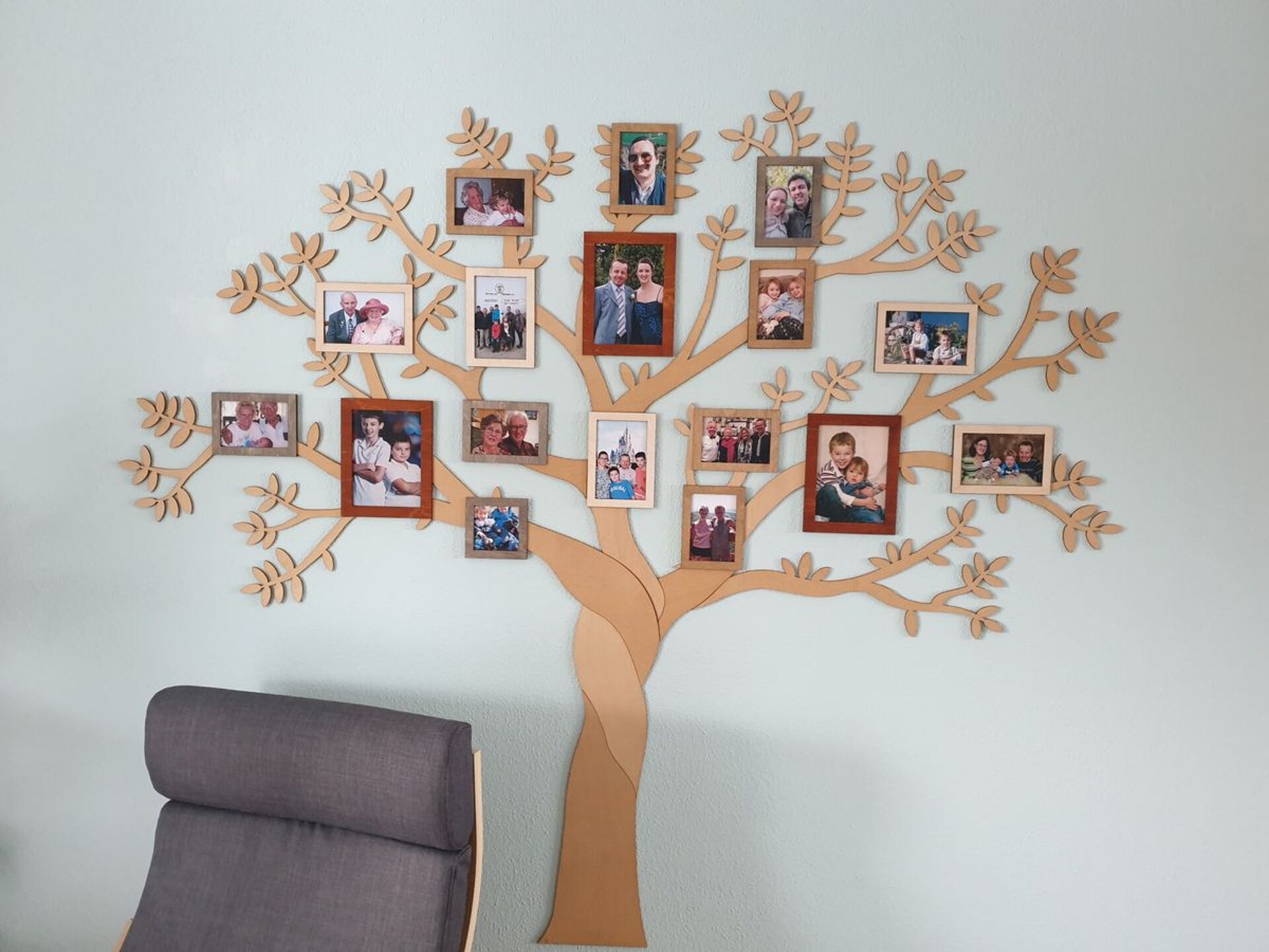 The Wooden Family Tree by 68travel™️ will transform any ordinary wall into a beautiful spot where you can place your family photos. You may also attach pins and small nails to the wooden parts to add other personal items. The tree itself is pretty large and will stand out in the middle of the wall decoration. Then you can add the additional tree branches, picture frames and other decorations according to your taste. So that not one of our family trees will be the same.