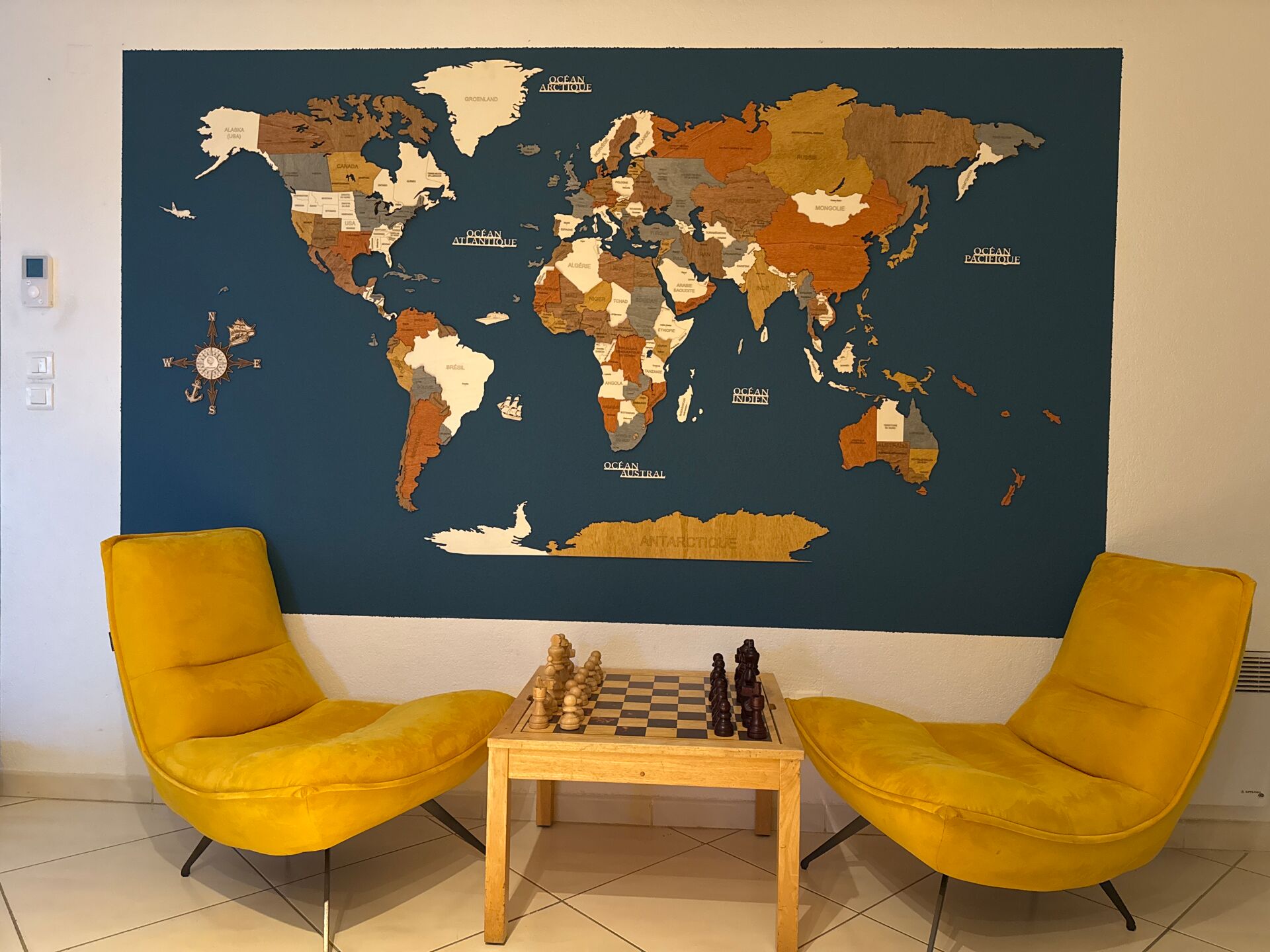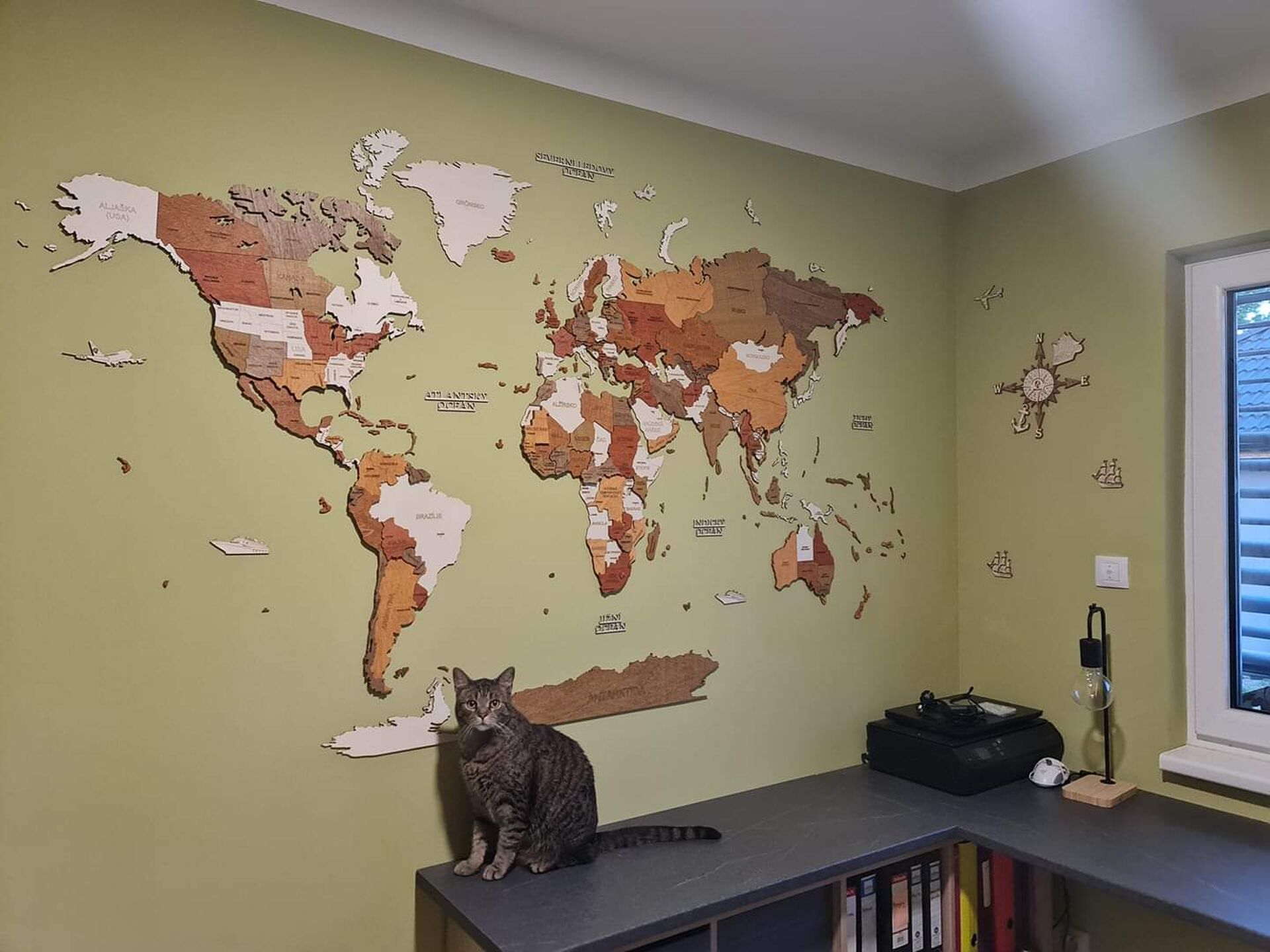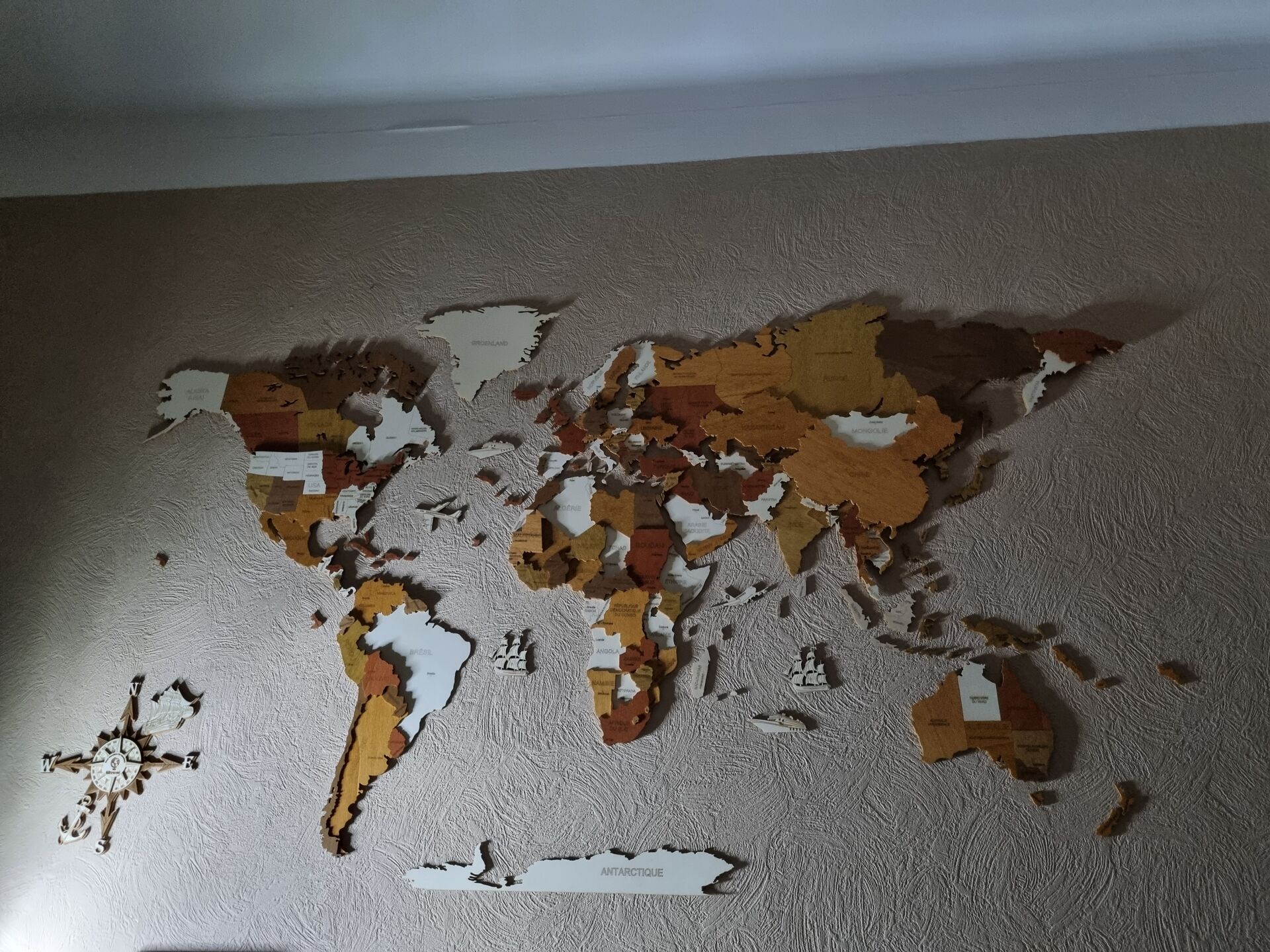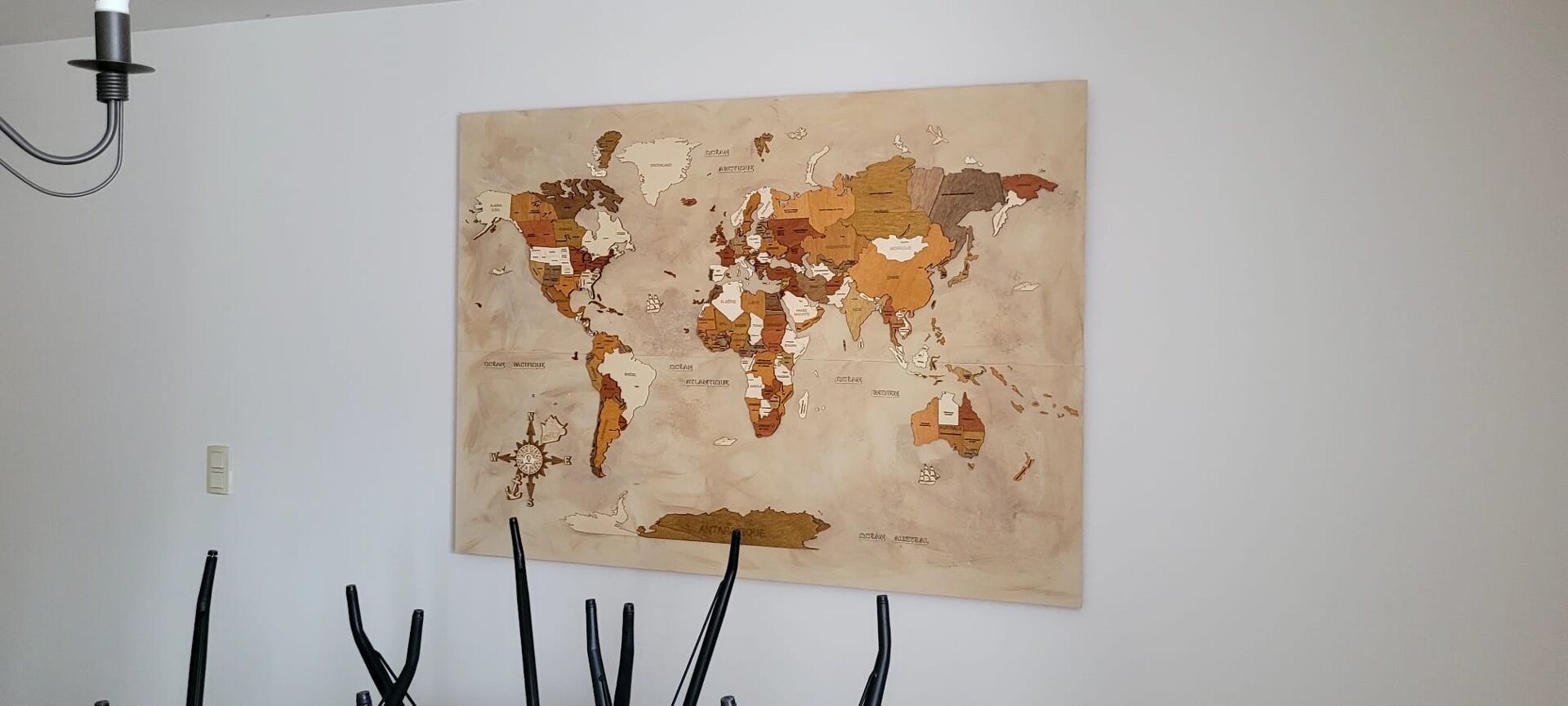Would you like to get your map or decoration customised in any way and make it even more unique? Add in island? Special colour for a specific country? Custom staining? Custom wooden text as an additional decoration to your map? No problem, we regularly handle requests like these and customisations start at 30 €. Drop us an email at miro@68travel.com with your detailed request in order to get started.